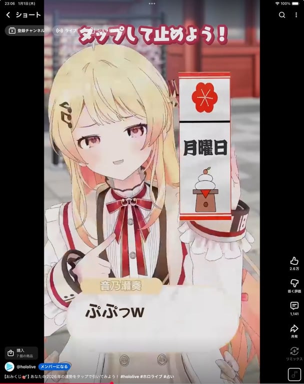 ホロライブのくじもやってみたら煽られたんだが😡😡😡。せめて運勢を占ってくれ。あと今日はまだ木曜日や。