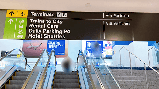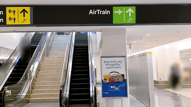 このように案内板があるので案内に従ってAirTrainの駅まで向かう。