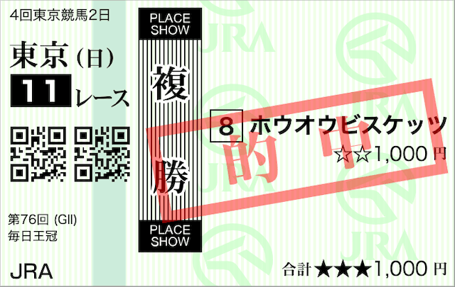 ホウオウビスケッツ、本日2枚目の馬券はあなたです。こちらも検討時間はほぼ1分。