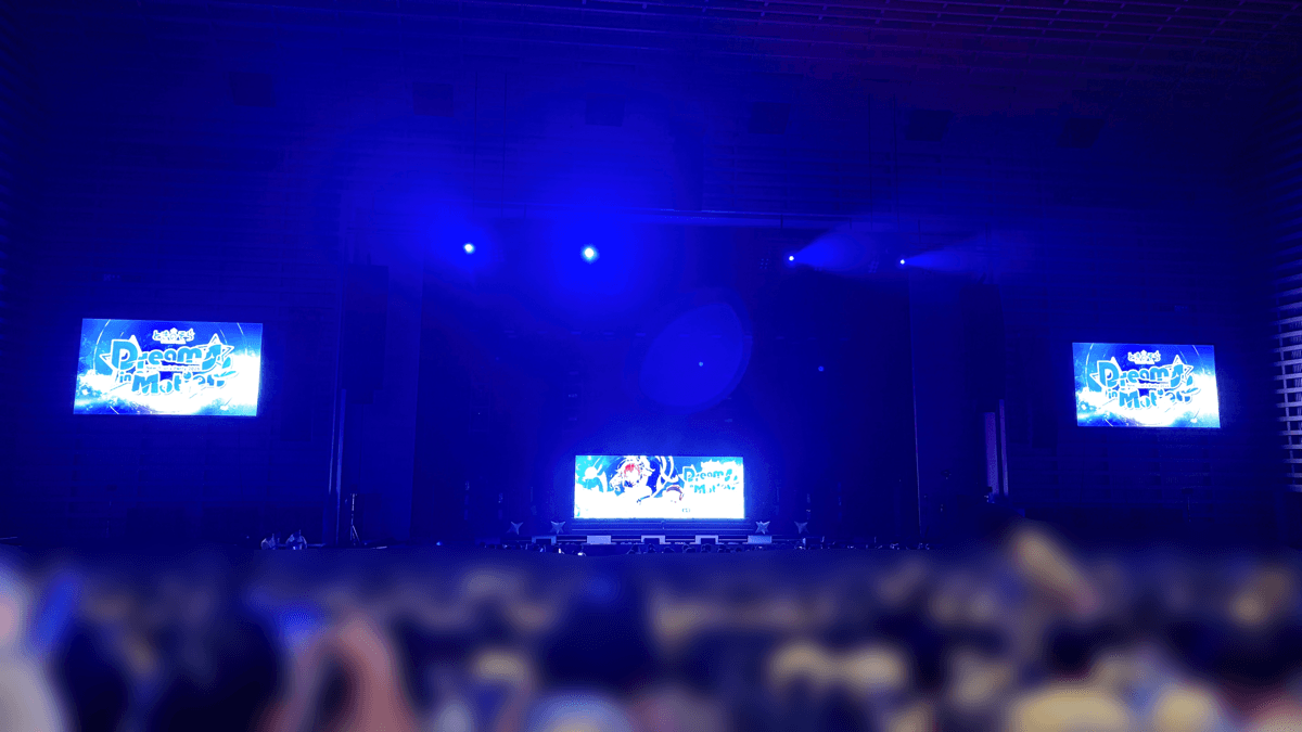 配信だと「しばらくお待ちください。」画面だったけど、会場ではスタッフが遊んでいたのか、ペンライトの色が変わったりしててそれはそれで楽しかった。
