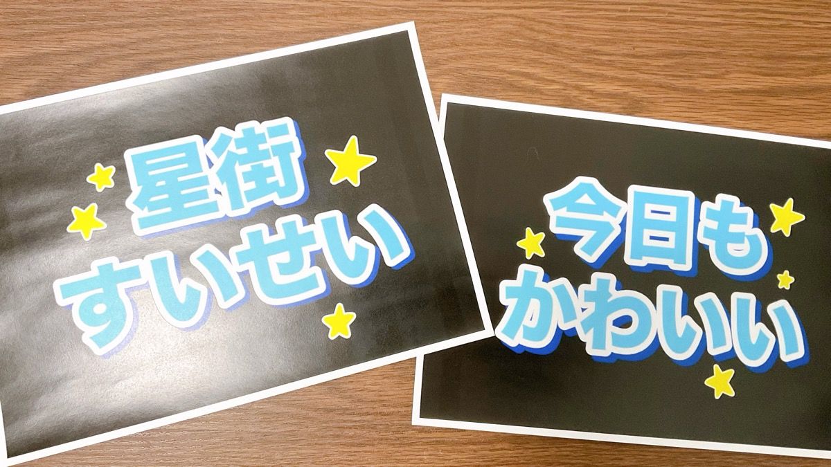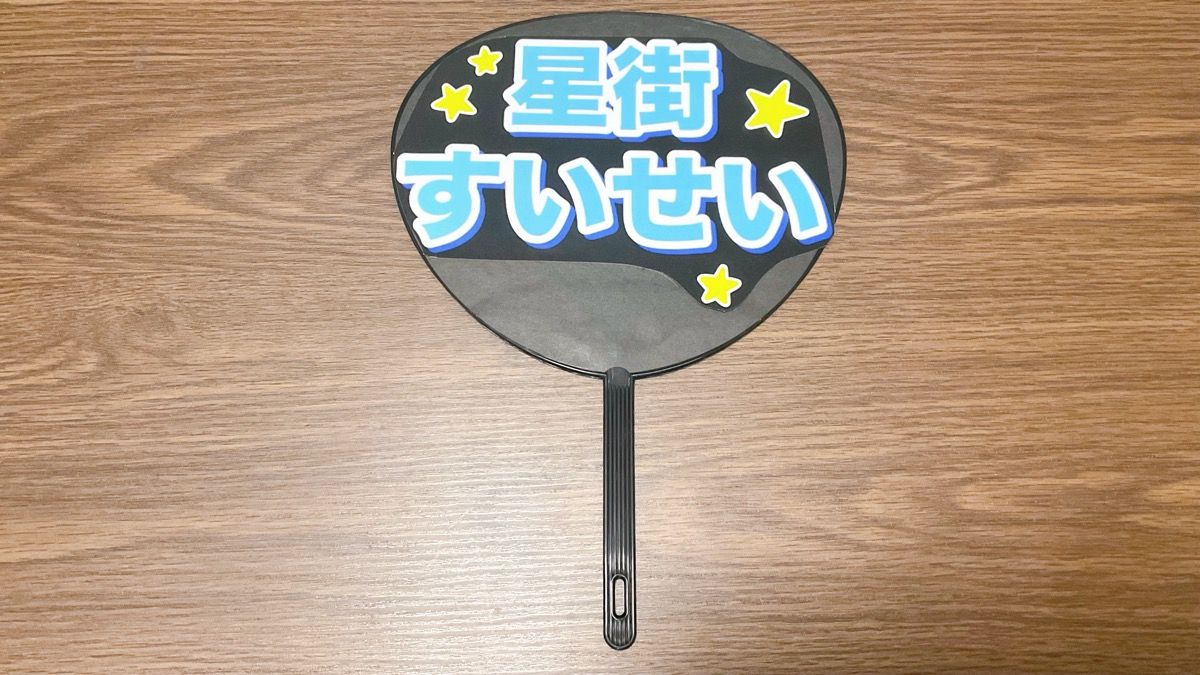 ライブにうちわ持って行くの初めてだな。どう使うんだろうと思ったら、ホロプラスのボイス聞いた感じ、ファンサもらう用か。まあ、一方通行でもいいのでアピールします。