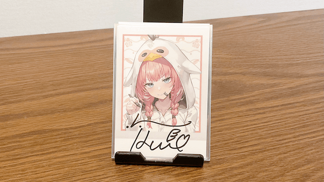 複製サインを前に飾るのもいいね。ちょうど今描きました! って感じが伝わる。困り眉もいい。「サイン書いたけどどうかな?」って言われてる感じがして良い。